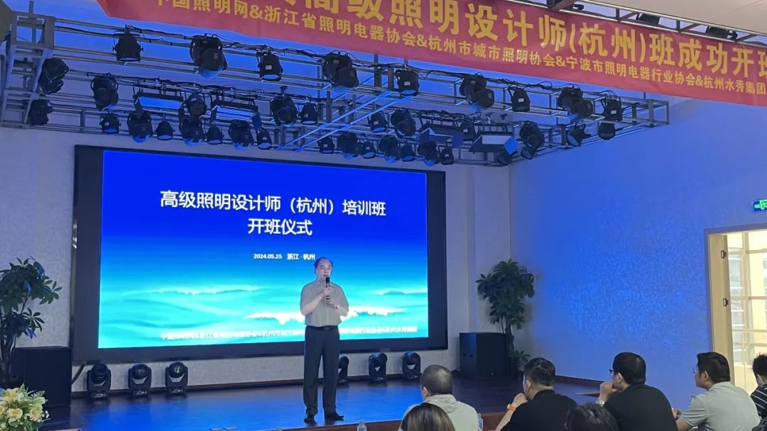 5月25日,由中国照明网联合浙江省照明电器协会、杭州市城市照明协会、宁波市照明电器行业协会组织开展的高级照明设计师培训班在杭州正式开课,来自全国各地的学员们齐聚一堂,开启一场职业技能提升的学习之旅。本次培训获得杭州水秀文化集团有限公司大力支持。