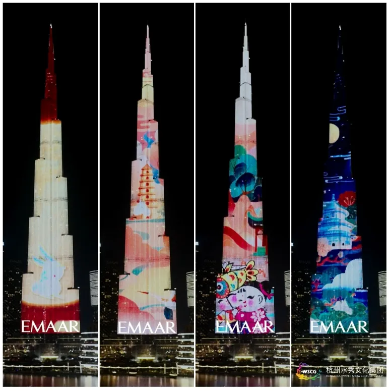 在阿拉伯半岛的心脏地带,屹立着世界瞩目的哈利法塔,这座地标建筑不仅是工程奇迹,更是全球文化与艺术交流的璀璨舞台。今年中秋,适逢中阿建交40周年,杭州水秀文化集团凭借创新技术,在国内外众多竞选公司中脱颖而出,成功中标哈利法塔中秋节光影秀项目,呈现一场融合中国传统韵味与现代科技的视觉盛宴。