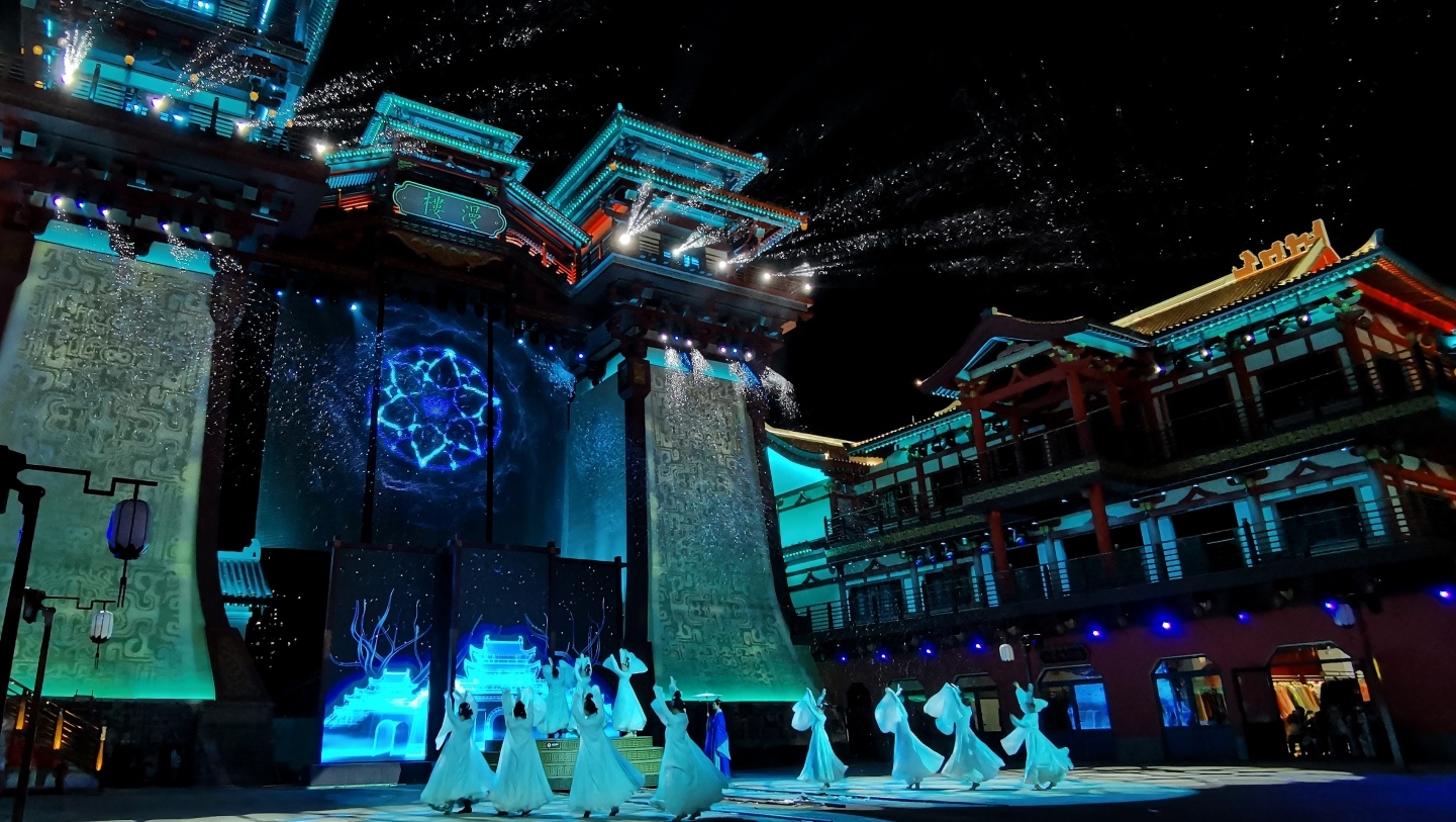 街区演出方面,水秀文化集团充分利用乔街独特的街景,巧妙设置曹营社、赤壁赋、最炫民族风篝火晚会等多个表演小舞台与装置,使游客在漫步间随时可欣赏到精彩纷呈的演出,极大地丰富了游览体验,让乔街的文化氛围愈发浓郁。