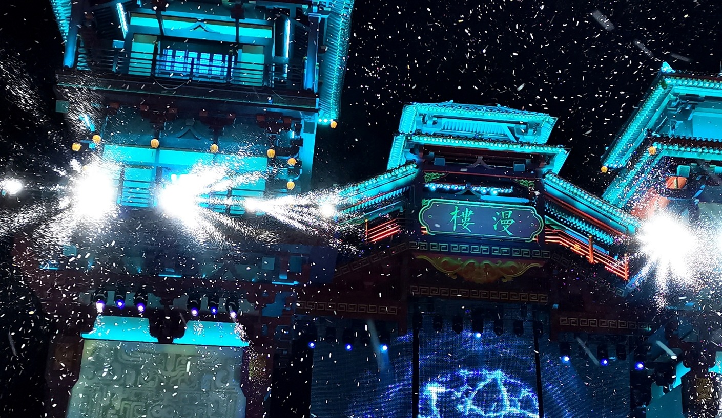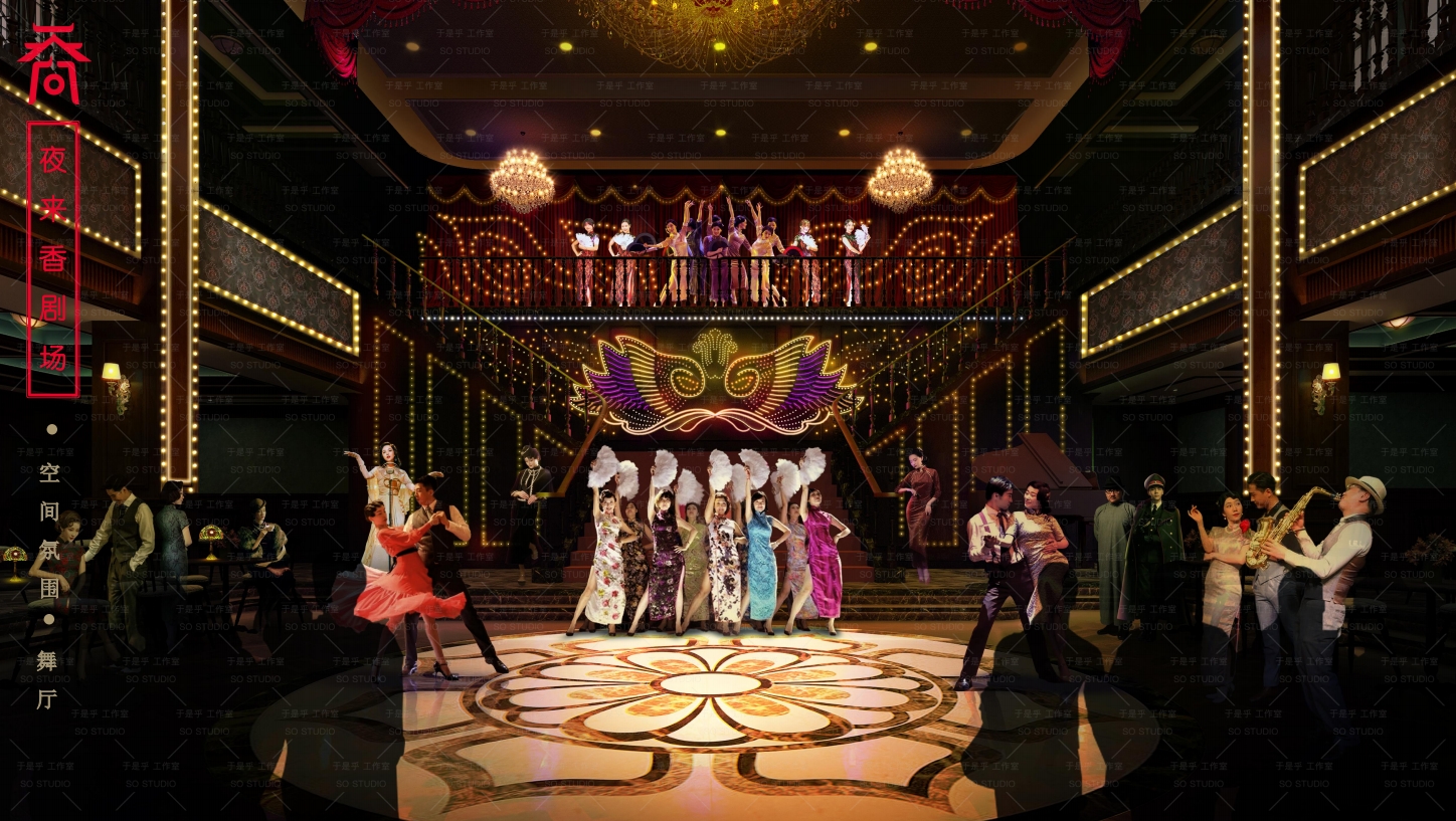 还有即将与观众们见面的室内大型沉浸式歌舞剧,这是水秀文化集团为乔街打造的又一亮点。在景区夜来香剧场,我们通过匠心设计的舞美、灯光、音效等元素,营造出身临其境的戏剧氛围,使游客不仅在观剧时感受剧情,更能融入其中,体验当“演员”的乐趣。